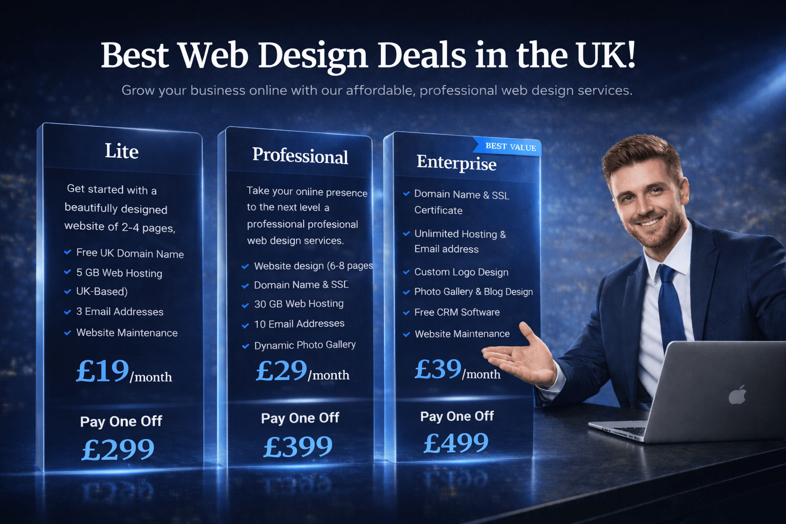 Our most popular option is our monthly website plan starting from just £19 per month. This includes your domain name, fast and secure hosting, and full website maintenance, meaning your site stays online, updated, and protected without any hassle. It’s a perfect choice for Dagenham businesses looking for low-cost, professional web design.